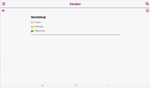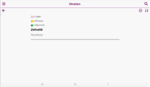 Na het selecteren van een plaats kom je op het scherm Straten. Rechtsboven kun je op deze pagina de gedane adressen (afgemeld als uitgevoerd of met een niet-uitvoerbare reden met eindstatus) uitfilteren en zoeken op meternummer. Het is ook mogelijk om de lijst met straten alfabetisch te sorteren.