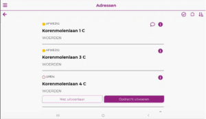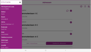 Wanneer het werk aan jou is toegekend in de PTI Planning Suite via de Verdeeltool en je kiest in het menu of Home-menu voor Adressen, dan worden de onderstaande schermen getoond.