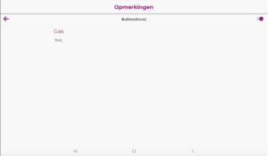 Opmerking – opent de Opmerkingenpagina. Standaard zie je alleen opmerkingen van de binnendienst. Met de toggle rechtsboven kun je ook opmerkingen van de buitendienst bekijken (indien aanwezig).