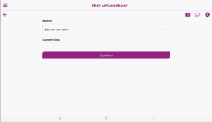 Selecteer in dit scherm een reden waarom de opdracht niet kon worden uitgevoerd en voeg eventueel een toelichting toe in het opmerkingenveld.