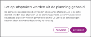 Je krijgt hierover een bevestigingsmelding waarin staat hoeveel afspraken worden verwijderd.