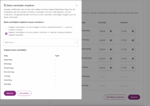 Kopieer werktijden van de huidige monteur → naar een andere monteur