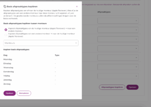 Deze functie is bedoeld om snel dezelfde afspraaktypeconfiguratie toe te passen bij meerdere monteurs, zonder dat je handmatig alle instellingen hoeft over te nemen.