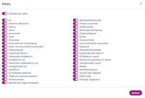 Met deze filters kun je eenvoudig een specifieke selectie van opdrachten weergeven.