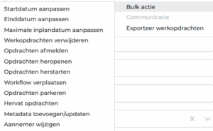 Met de knop Bulkacties kun je in één keer meerdere opdrachten aanpassen.